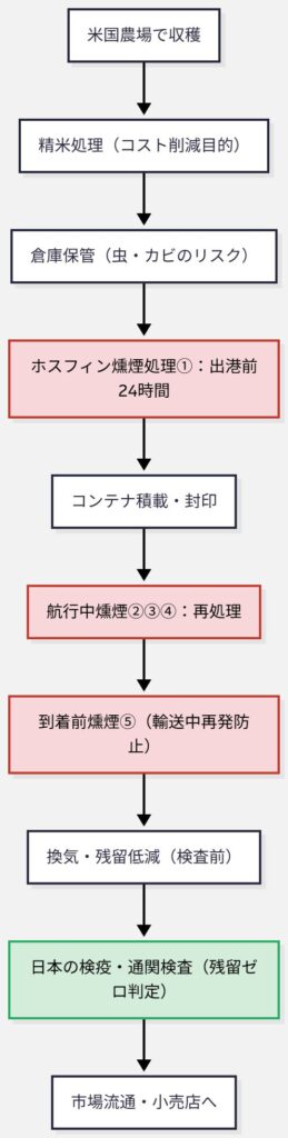 そのため出港前に、**防腐・防虫を目的とした燻煙処理(ポストハーベスト fumigation)**が行われます。